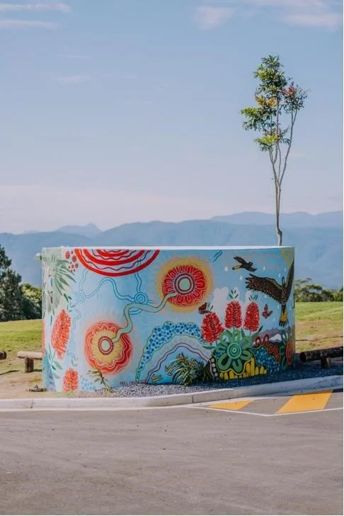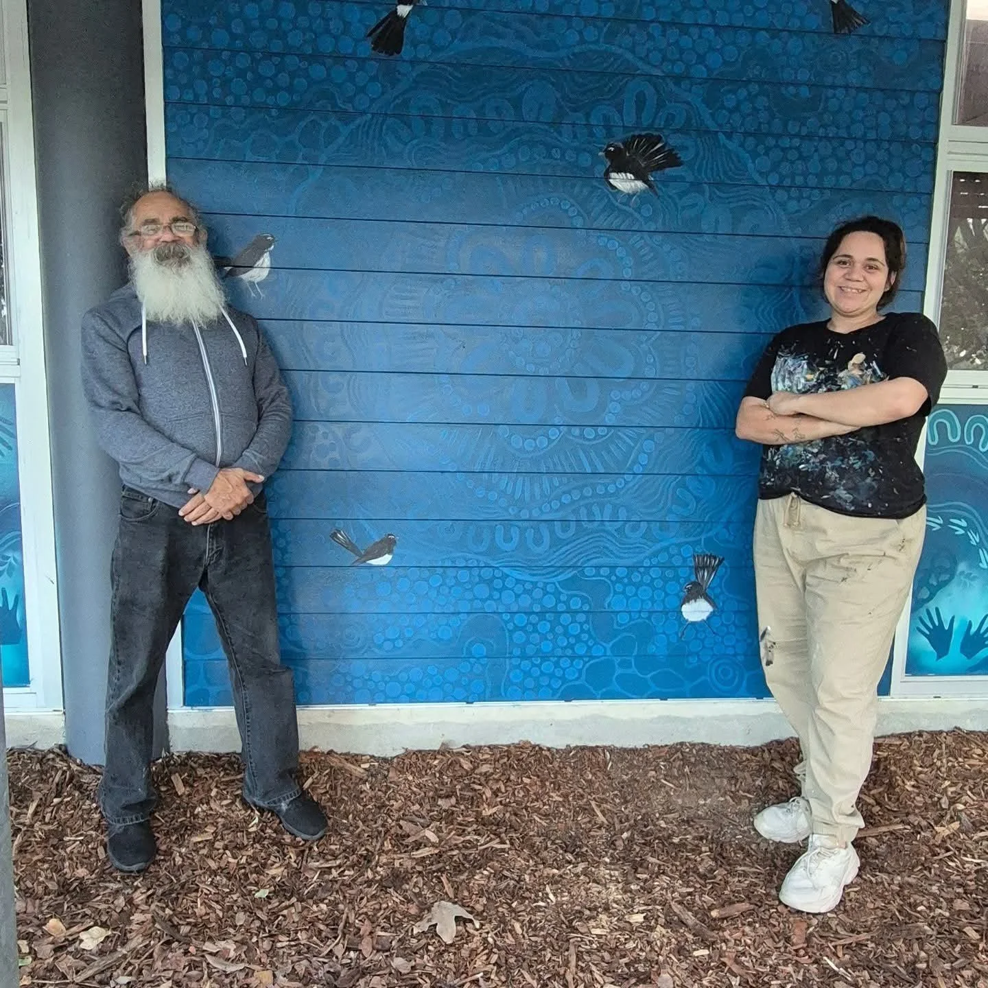 Each mural we create is a story brought to life — a blend of colour, culture, and connection. As a father–daughter team, Tony and I combine generations of experience, creativity, and heart to transform blank walls into meaningful visual narratives. Our murals are more than art; they are community touchstones that celebrate identity, belonging, and the shared stories of the spaces they inhabit. From large-scale public commissions to intimate cultural installations, we work closely with clients to design and paint pieces that speak to the spirit of place. Every project reflects our shared passion for storytelling through art — weaving together contemporary design, traditional influences, and the natural beauty of Country.